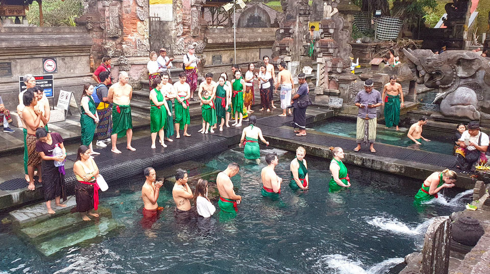 Z této části projdete do střední oblasti chrámu. Napravo vejdete do části s dvěma bazény Petirtaan s křišťálově čistou posvátnou vodu, která teče ze 30 očistných pramenů. Obvykle se zde tvoří fronty místních a turistů, kteří provádí očistnou ceremonii Melukat. Podle pravidel se začíná modlit u levého pramenu a postupuje se přes všechny až k tomu nejvíce vpravo. Dva předposlední prameny v levém bazénu jsou vyhrazeny pro očistnou ceremonii pro zesnulé.